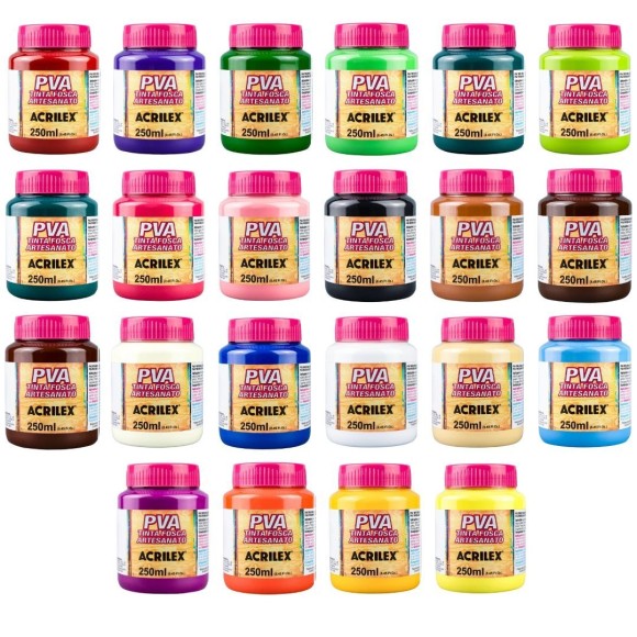 A Tinta Plástica PVA Fosca 250ml Acrilex é perfeita para dar um toque personalizado e elegante aos seus projetos artesanais! PVA Tinta Fosca para Artesanato , essa tinta é feita à base de Látex PVA , conforto um acabamento fosco e sofisticado.