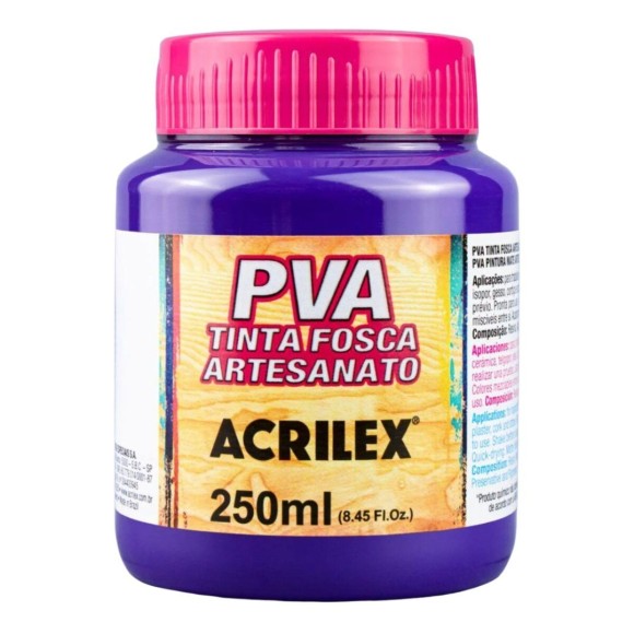 A Tinta Plástica PVA Fosca 250ml Acrilex é perfeita para dar um toque personalizado e elegante aos seus projetos artesanais! PVA Tinta Fosca para Artesanato , essa tinta é feita à base de Látex PVA , conforto um acabamento fosco e sofisticado.
