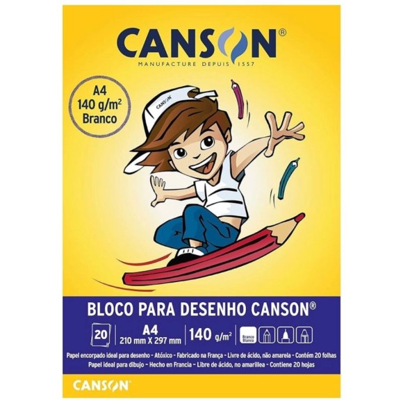 Bloco Para Desenho A4 Branco 140GR Com 20 Folhas CANSON