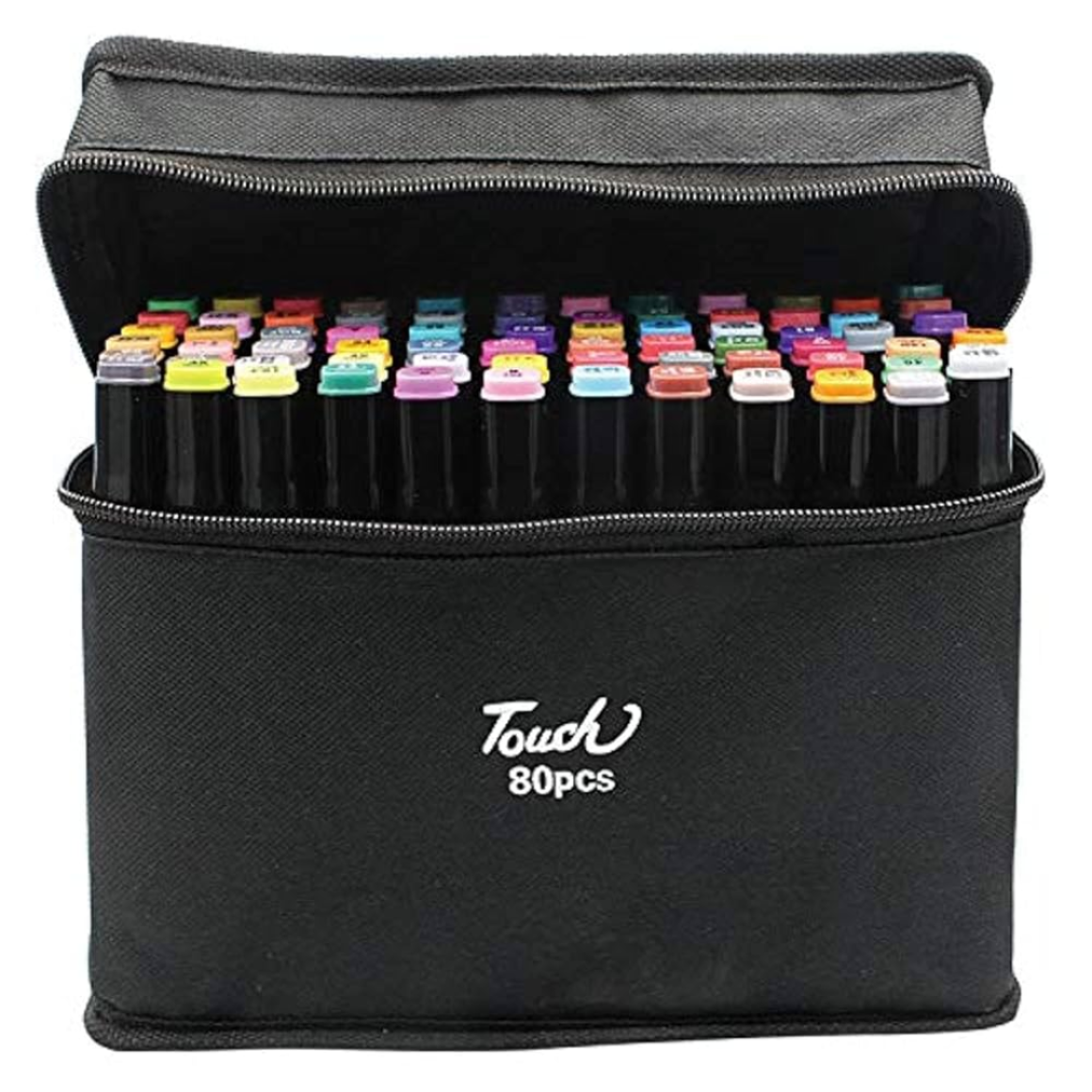 Caneta Touch Permanente 80 Cores Ponta Dupla com Bolsa