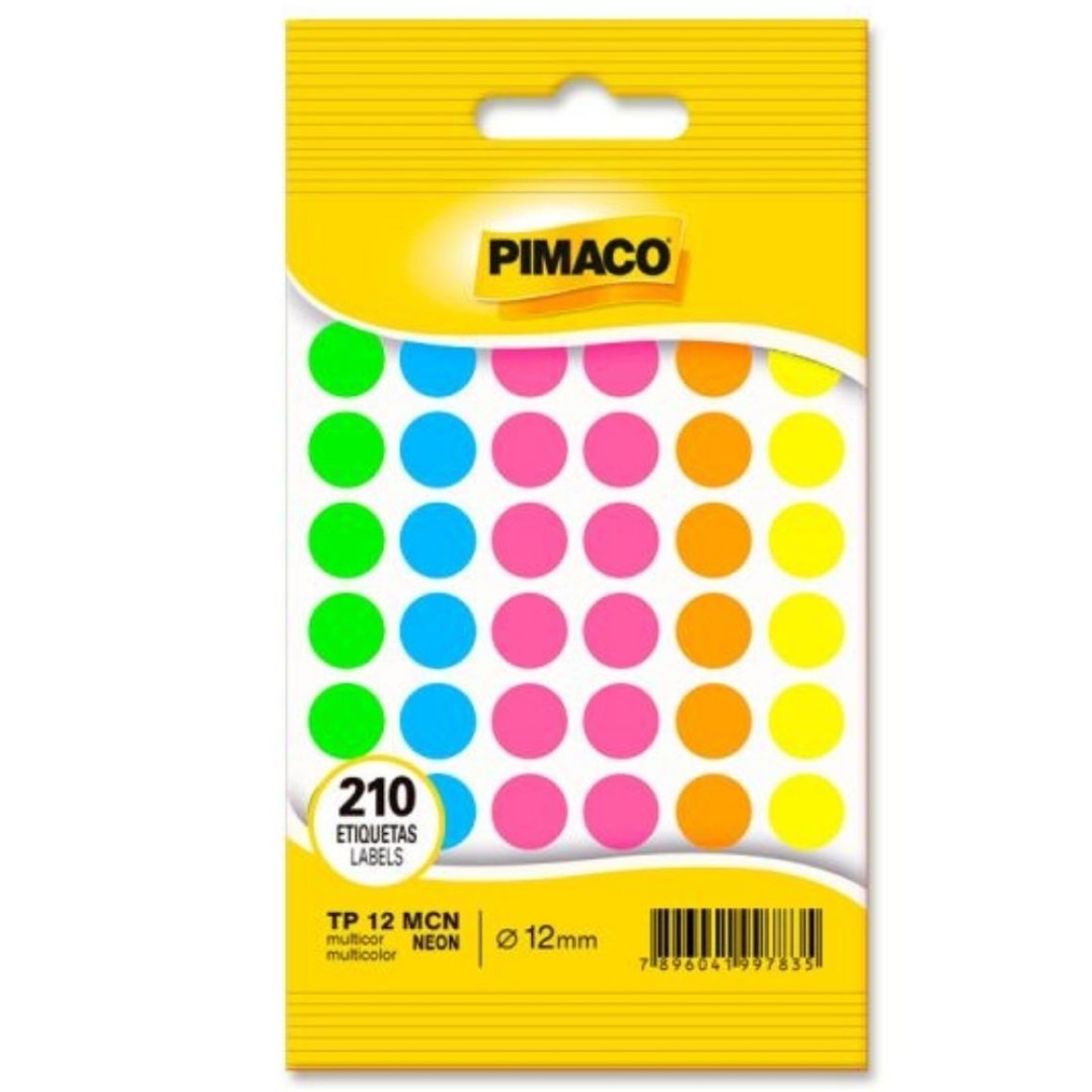 Etiqueta Diametro 12,0 Cores Neon TP-12 com 210 Etiquetas PIMACO