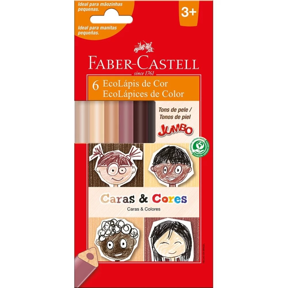 LAPIS DE COR 06 CORES JUMBO TRIANGULAR TONS DE PELE CARAS E CORES FABER CASTELL