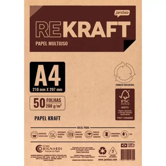 Dê um toque natural e criativo aos seus projetos com o Papel Kraft A4! Com gramatura de 200g e pacote com 50 folhas, é a escolha perfeita para trabalhos artesanais, embalagens e muitas outras ideias.
