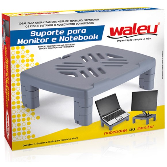 Ideal para organizar a mesa de trabalho separando os fios e evitando o aquecimento do notebook. possui calha para saída e organização de cabos, bordas que evitam que o notebook escorregue, base com furos que evitam que o aquecimento dos equipamentos nele apoiados e acompanha 16 peças para regulagem de altura.
