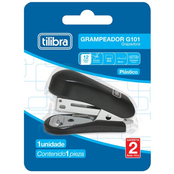 Grampeador 12 Folhas Mini Preto G101 TILIBRA