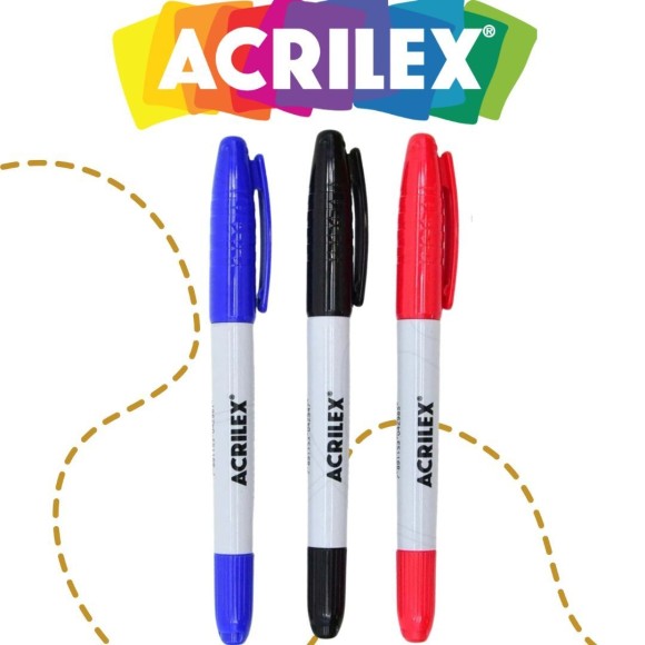 • Agora você está pronto para liberar toda sua criatividade com a Caneta Multiuso Permanente 2 Pontas Acrilex! Seja um mestre da arte em qualquer superfície!