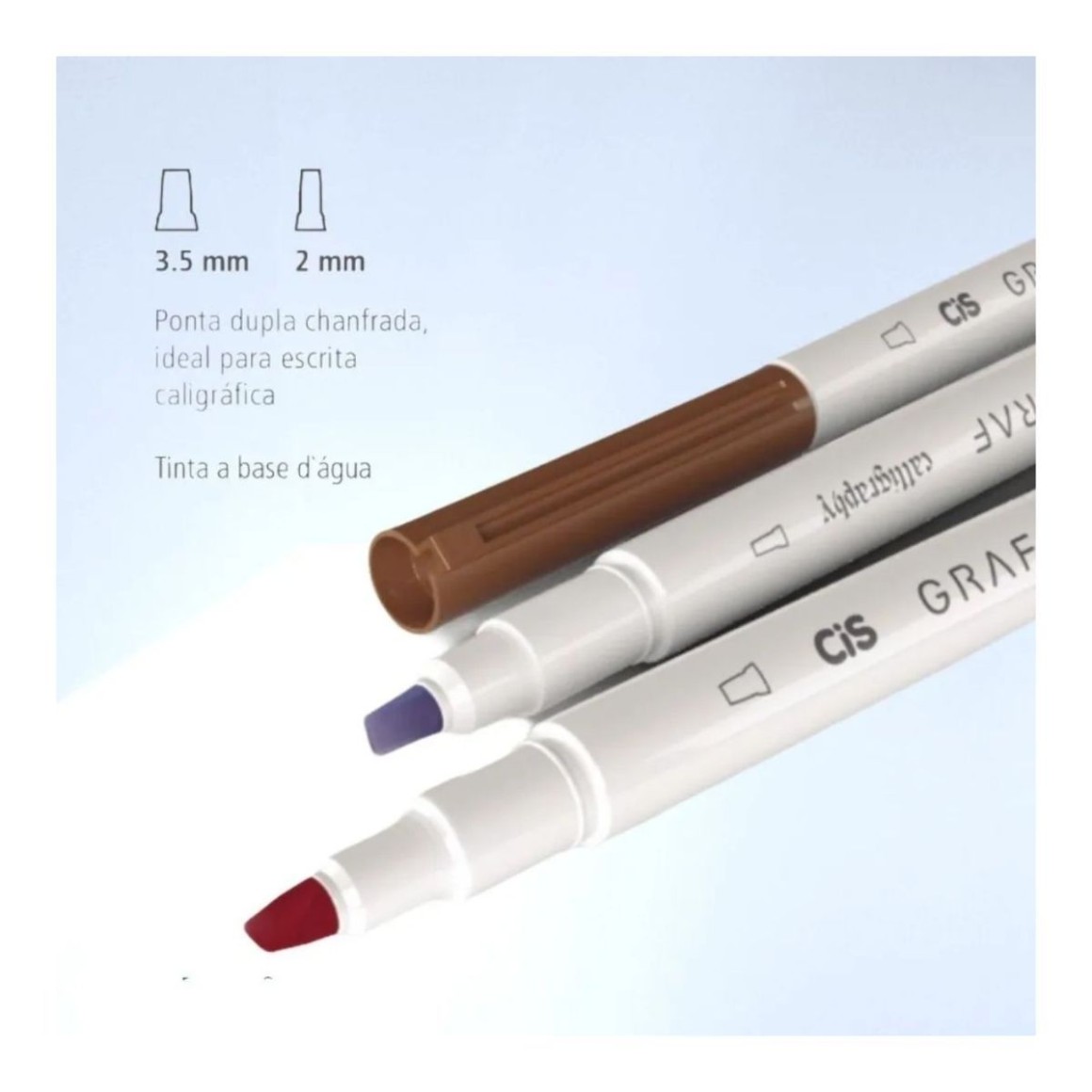 Caneta Hidrográfica Kit Com 6 Cores E 2 Pontas Graf Calligraphy - CIS