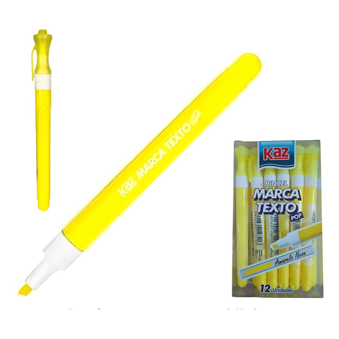 Marca Texto Amarelo Neon – Caixa com 12 Unidades | KAZ