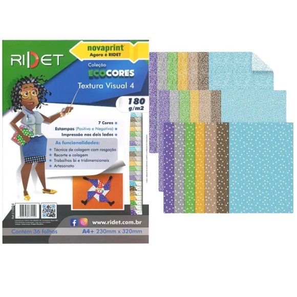 - Bloco Criativo Textura Visual 4 OF 7 Cores 36FLS 180GR 230X320MM ECOCORES RIDET NOVAPRINT REF.010014