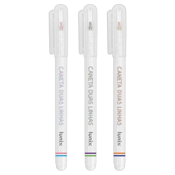 • Descrição: A Caneta Duas Linhas Lunix possui duas pontas de poliéster para efeito decorativo.