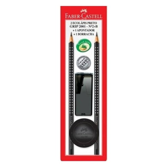 KIT 2 Lápis Grip Preto +Borracha +Apontador - FABER CASTELL