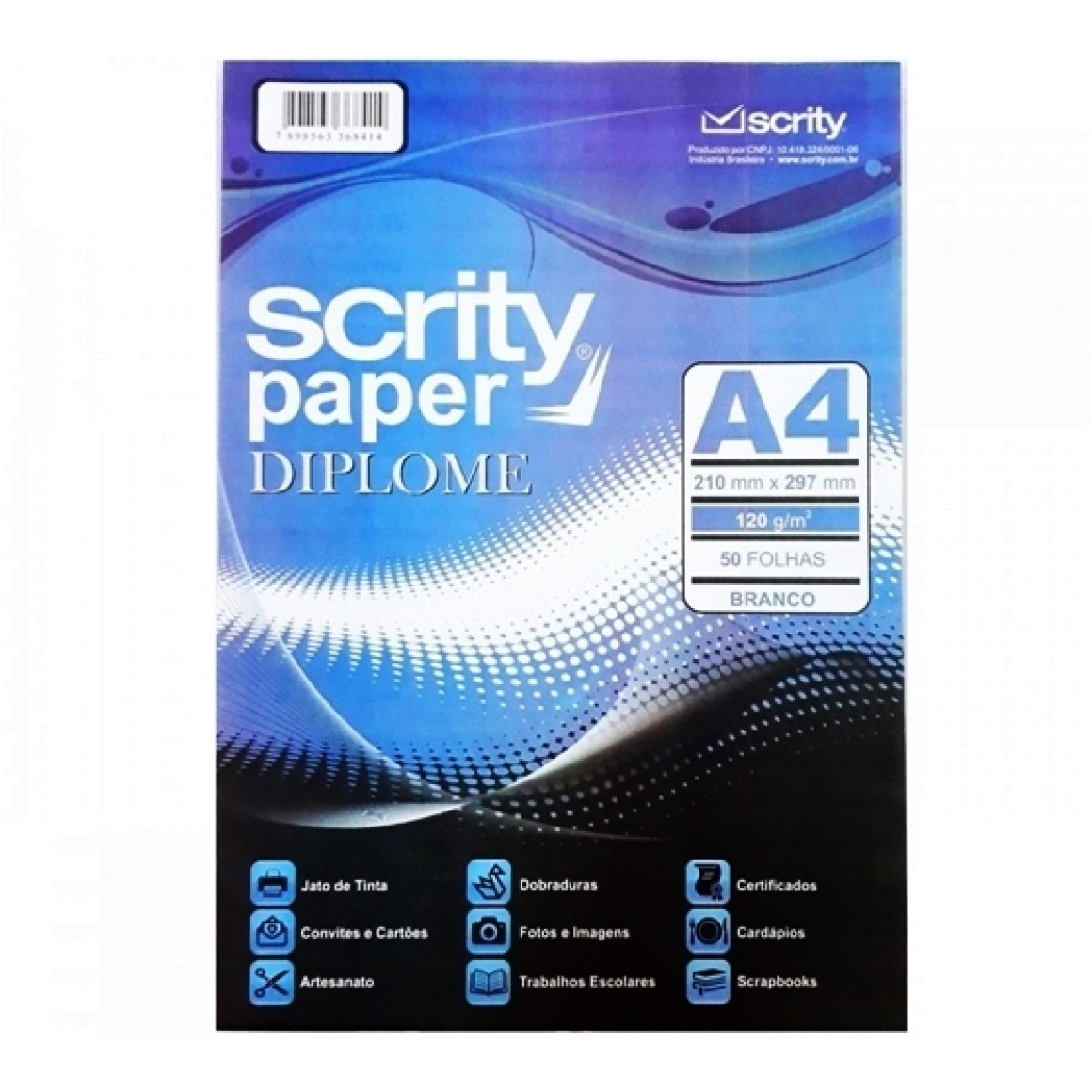 Papel A4 Diplomata/Opaline 120gr Branco Com 50 Folhas SCRITY